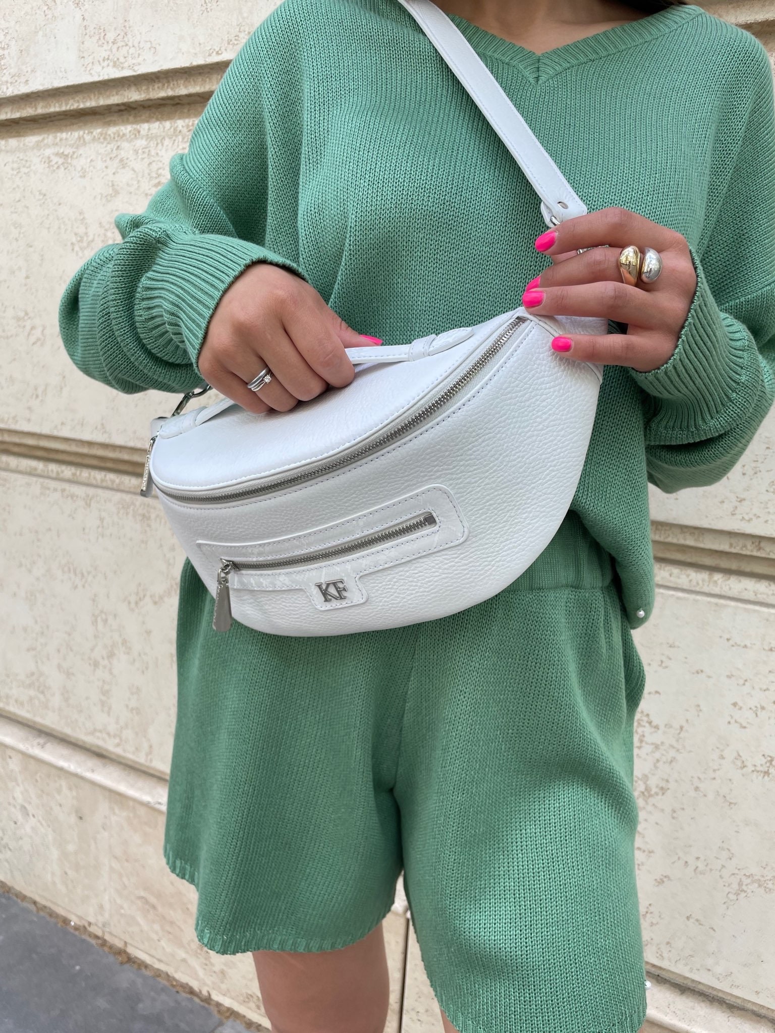 Leather women's Banana bag, White Leather Banana bag, Women's Bananka bag, Leather belt Bananka bag KF-3550