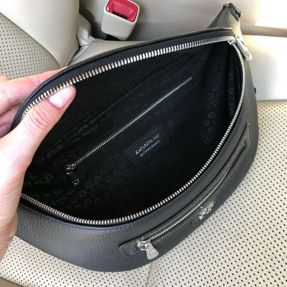 Leather women's Banana bag, Black Leather Banana bag, Women's Bananka bag, Leather belt Bananka bag KF-3758