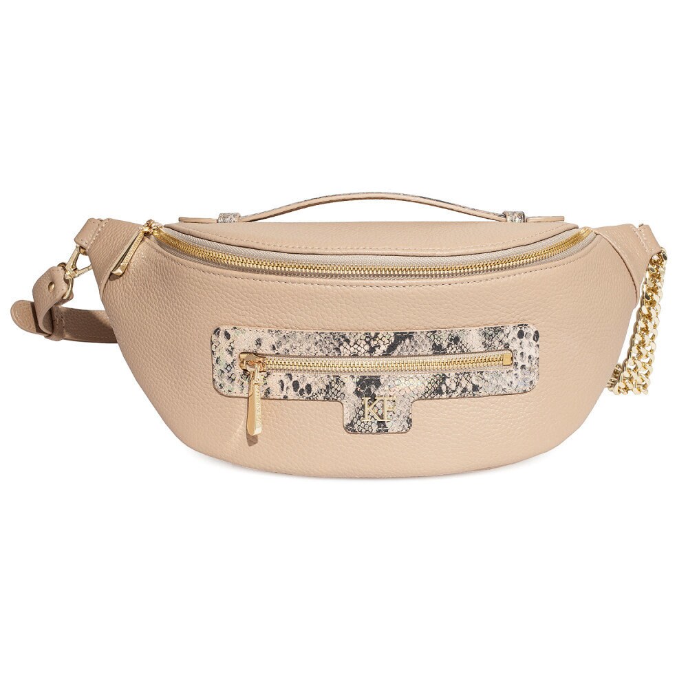 Leather women's Banana bag, Beige Leather Banana bag, Women's Banana bag, Leather belt Bananka bag KF-4402