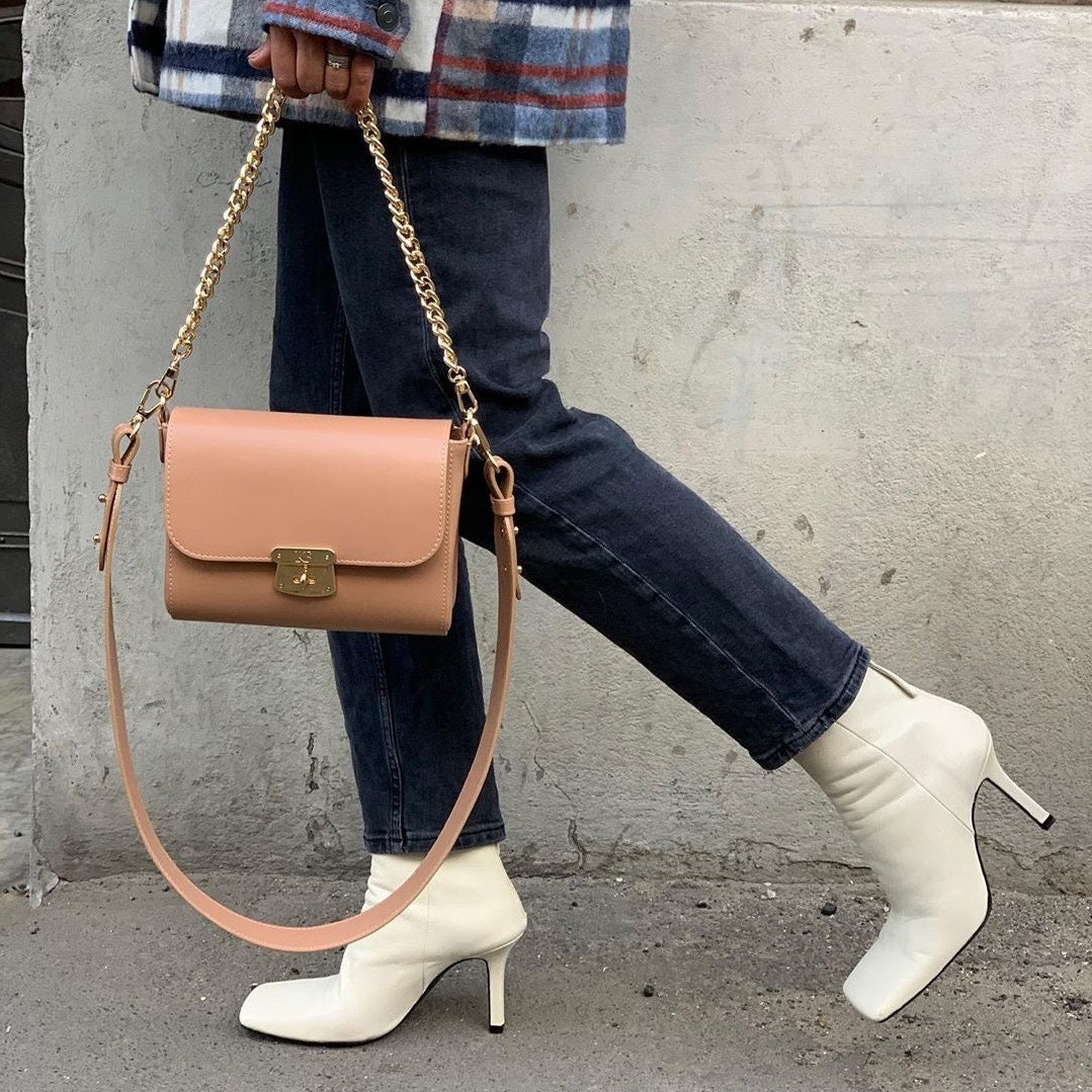 Leather Cross body Bag, Beige Leather Shoulder Bag, Women's Leather Crossbody Bag, Leather bag KF-3870