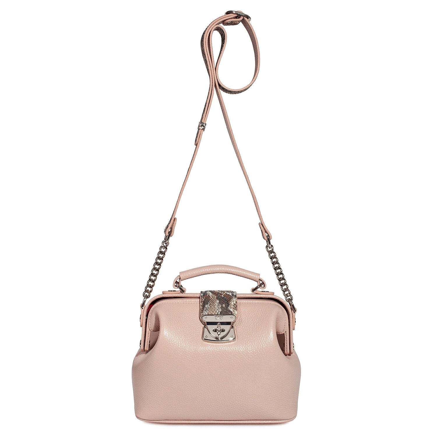 Beige (nude) genuine leather handbag from ukrainian designer Katerina Fox. This model is designed for women who appreciate the sleek design combined with functionality and comfort. High-quality and reliable hardware ensure long service bags. The internal space of a bag is equipped with one spacious compartment and two patch-pockets and one zipper pocket. The bag is closed with a clasp. The bottom of the bag is protected with metal legs. There is a long handle that allows you to wear the bag on the shoulder. The kit also includes a storage bag.