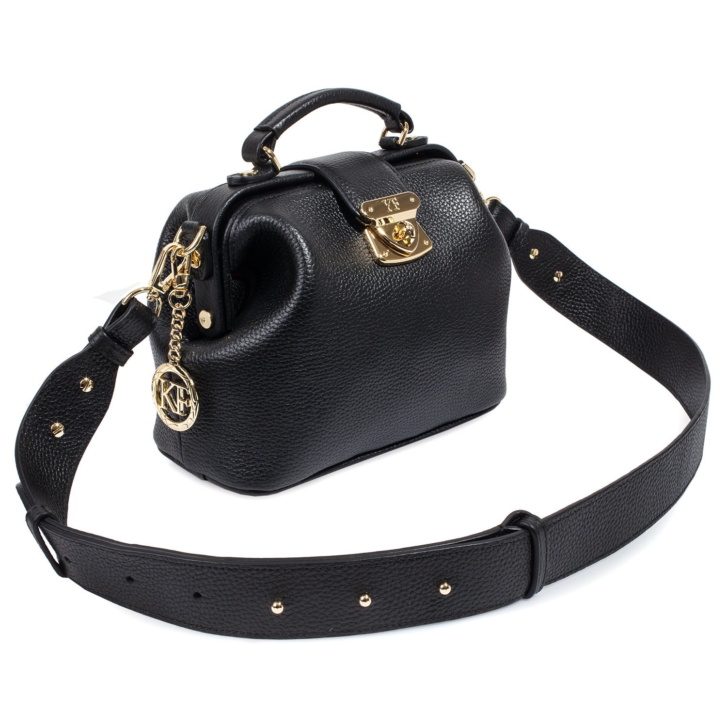 Leather doctor bag for women, Black Leather Shoulder Bag, Women's Leather doctor bag, Leather bag KF-5595