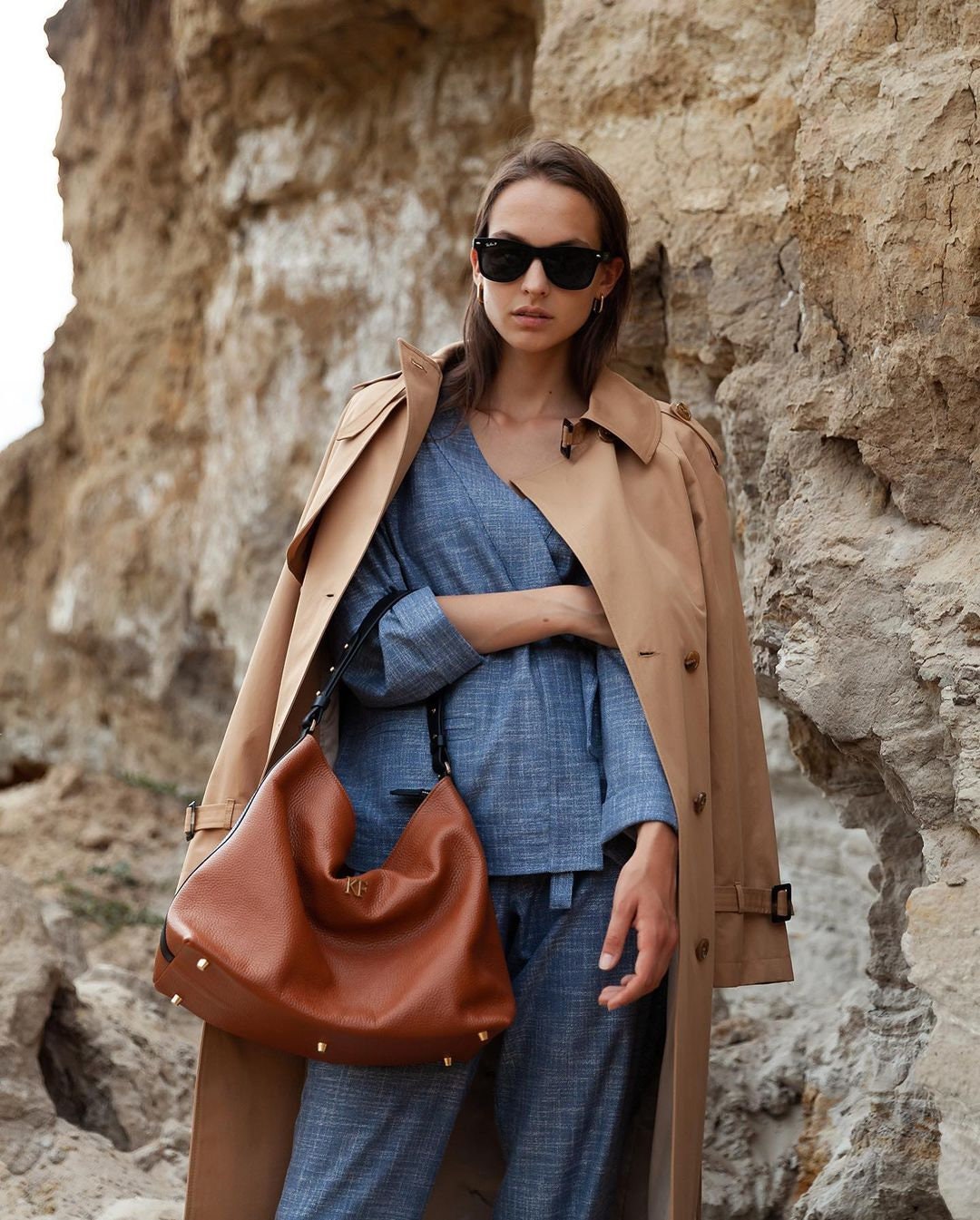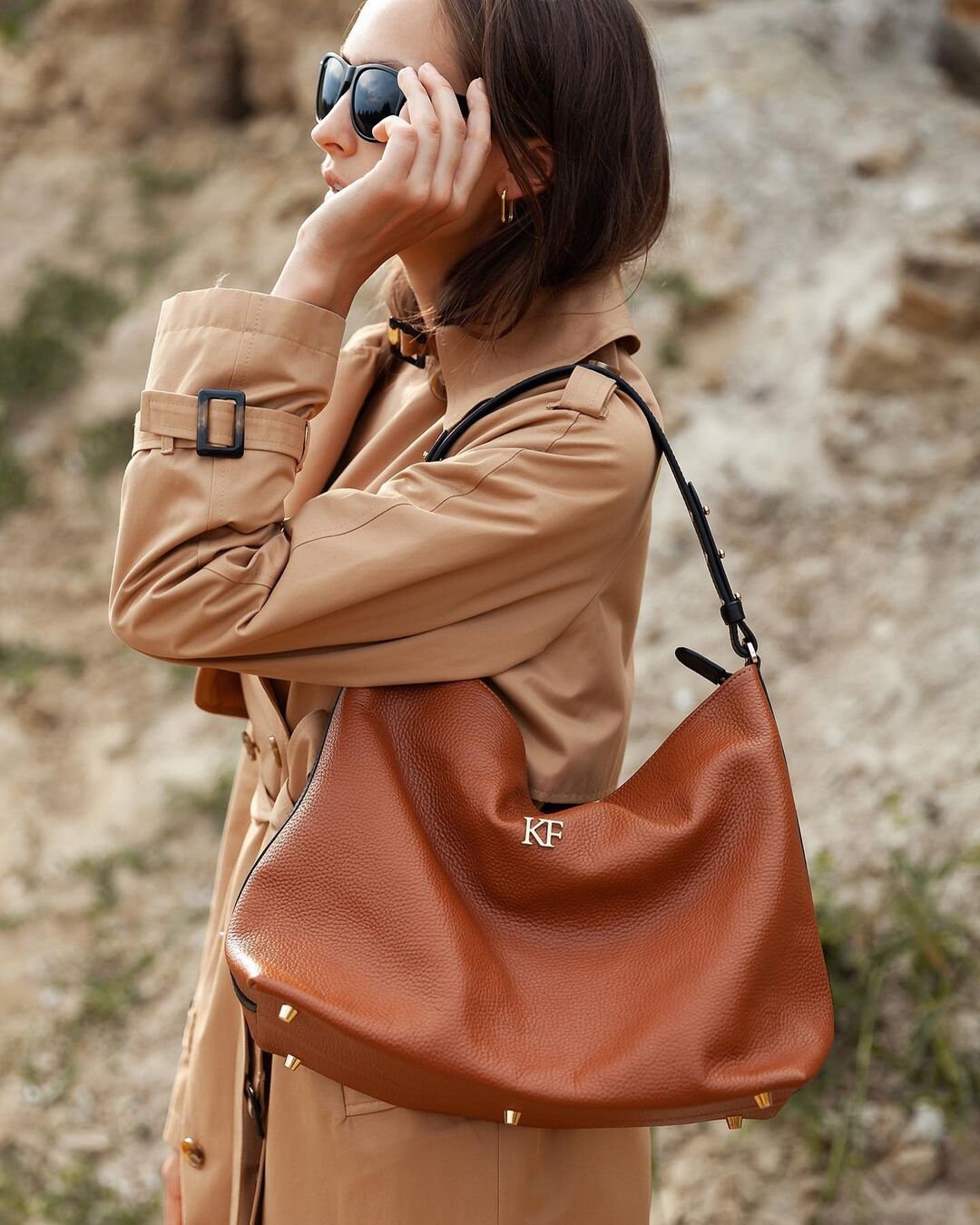 Leather Hobo Bag, Ginger Leather Hobo Bag, Women's Leather Hobo Purse KF-3293