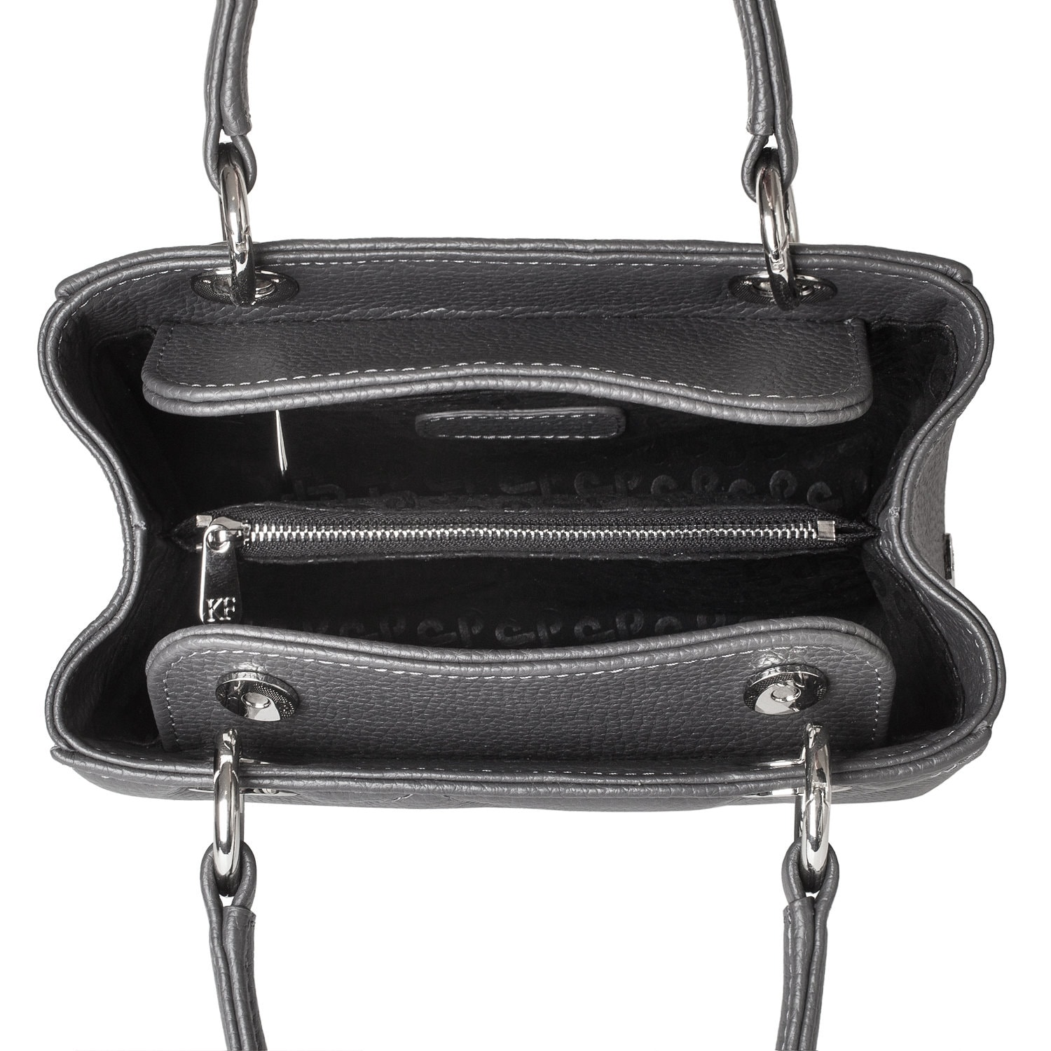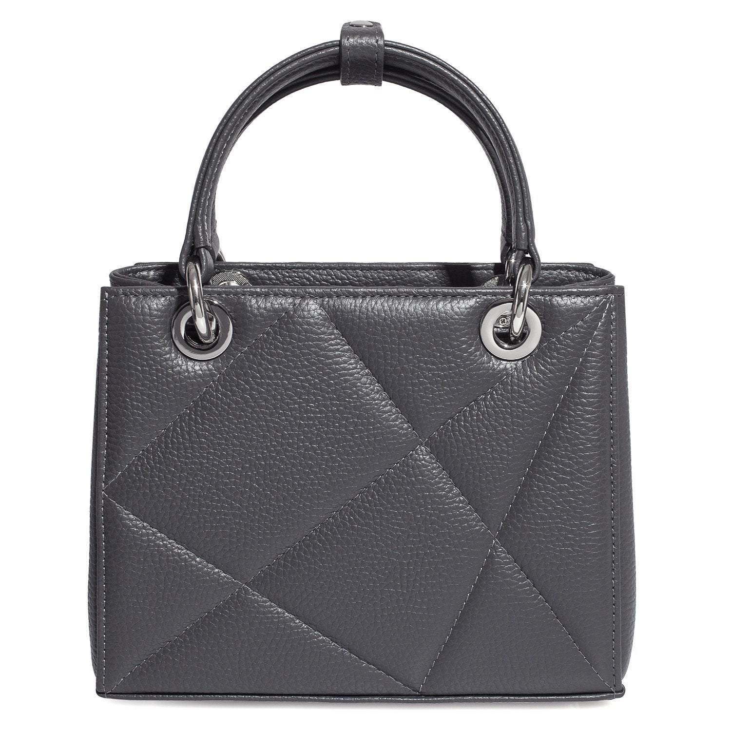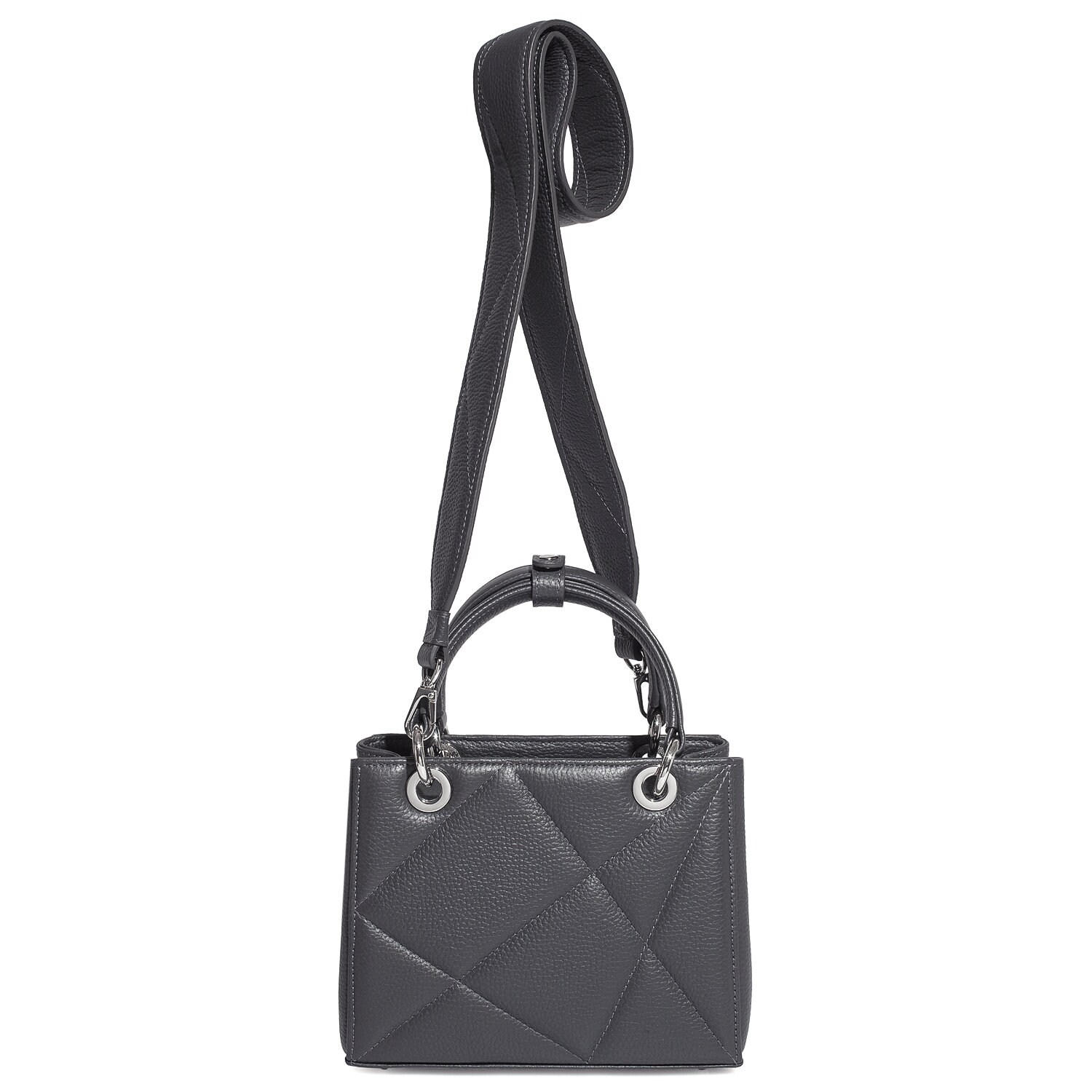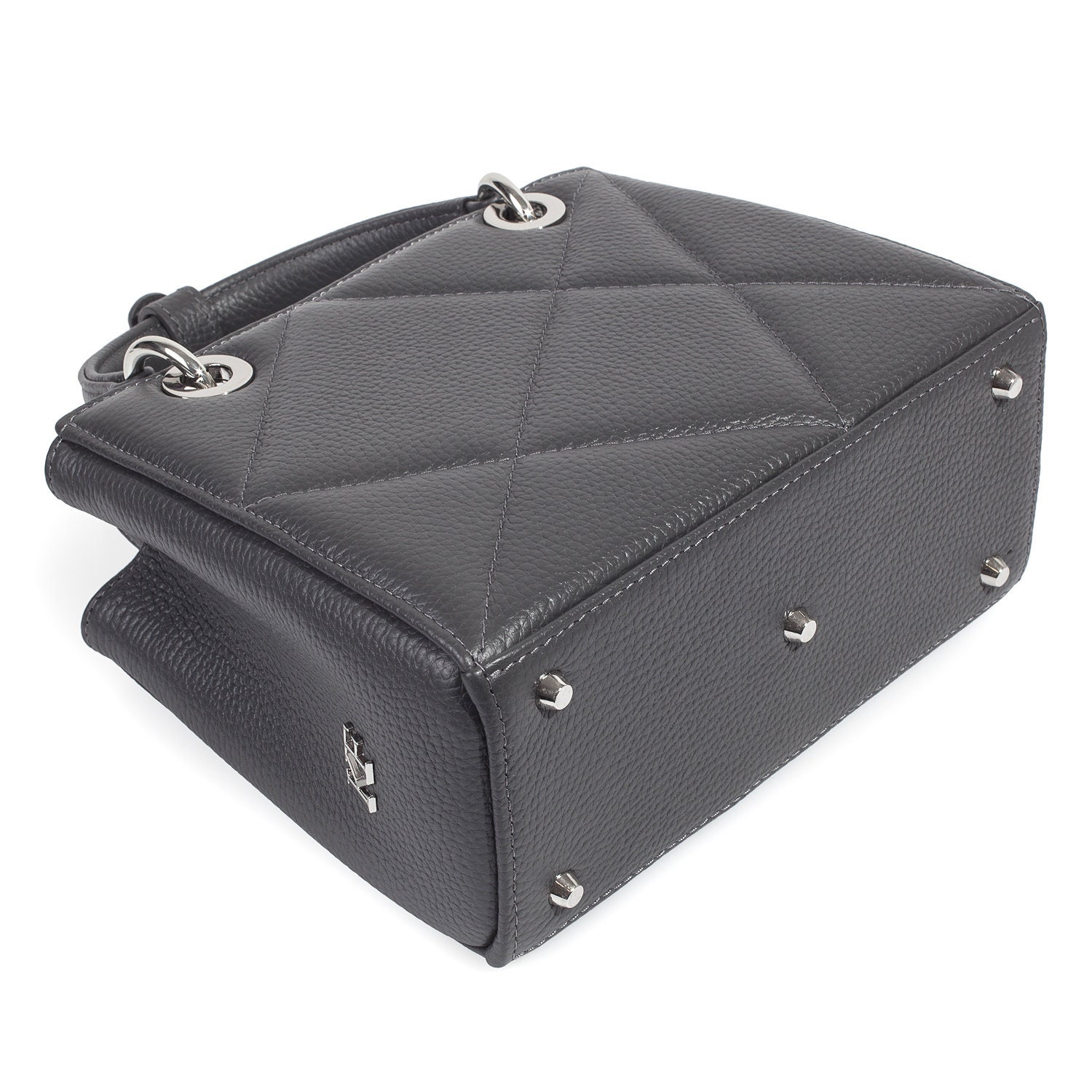 Dark grey genuine leather handbag from ukrainian designer Katerina Fox. This model is designed for women who appreciate the sleek design combined with functionality and comfort. High-quality and reliable hardware ensure long service bags. Inside the bag are three spacious compartments, one with zip, two patch pockets and one zippered pocket closes with a zipper. The bottom of the bag protected by metal feet.